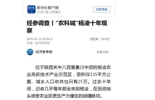 《这个西北小城何以走出28位院士》《打造上海合作组织农业技术合作的“样板间”》《“农科城”杨凌十年观察》《油菜花田里的“追花人”》《文化中国行丨高校里竟藏着“虫羽宝库”“动物王国”?来这上一堂最生动自然课》《杨凌示范区:科技筑牢现代农业“基本盘”》……